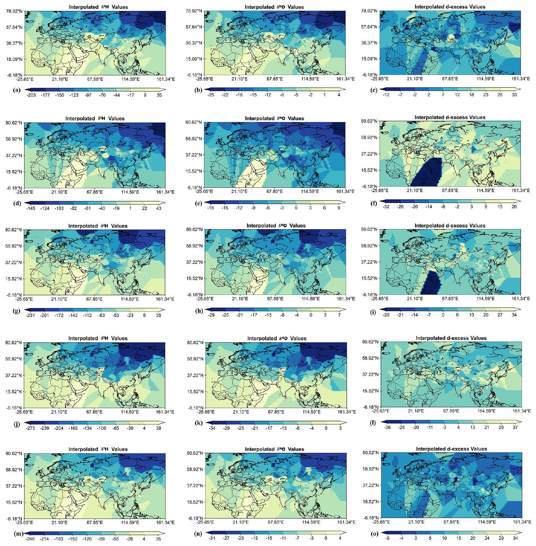 deeper understanding of the process, climate change mechanisms, water vapour transport between land and sea, and supply relationships between water bodies. The precipitation stable isotope dataset we have constructed for the Eurasian continent can be combined with traditional meteorological data to provide more information for climate and hydrological research.