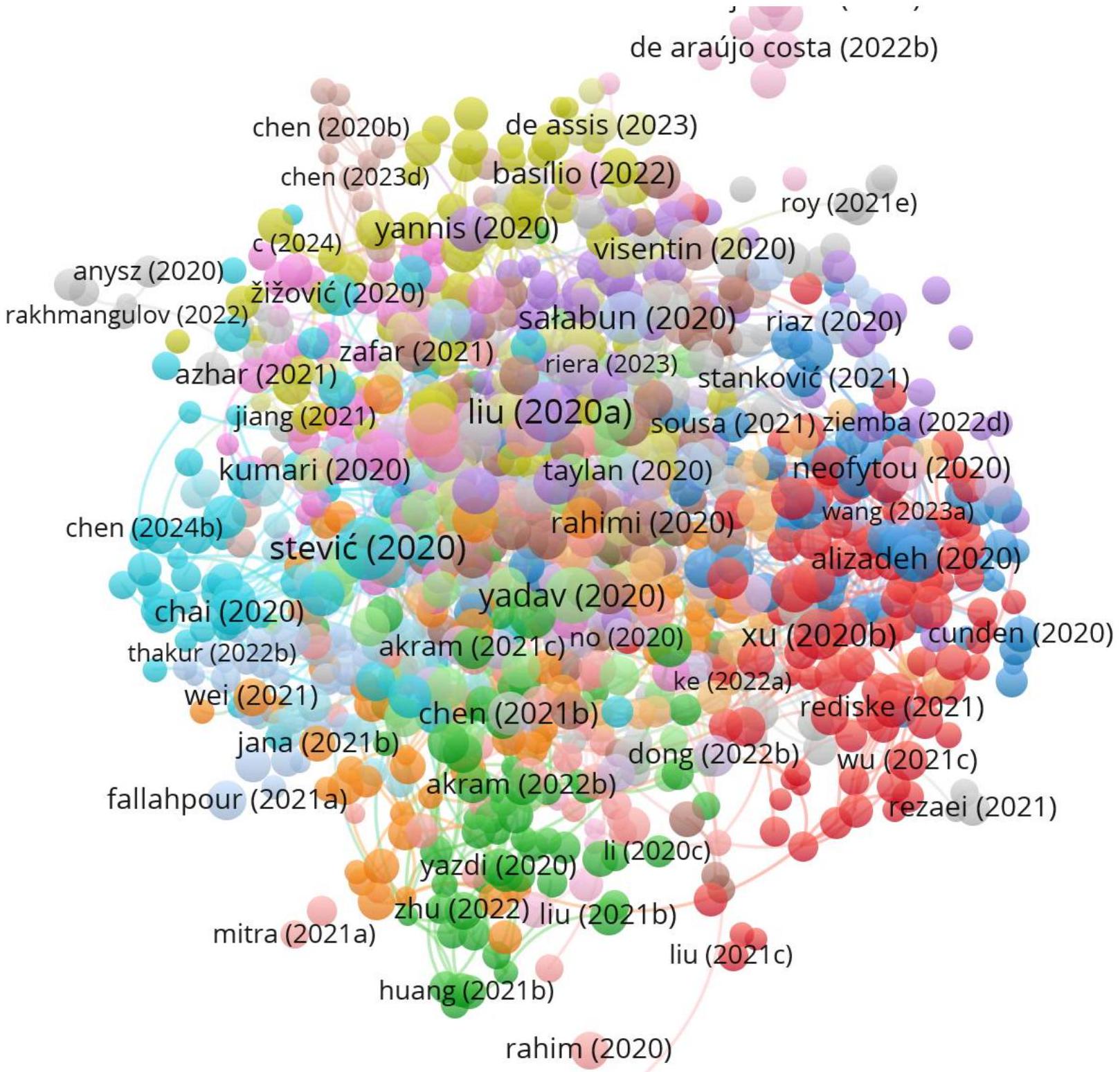 i. Documents: The study of citations primarily focuses on specific academic publications, including journal articles, conference papers, books, and patents. Using VOSviewer, researchers can analyze citation links among these papers, find influential publications, track the history of ideas, and discover the intellectual framework of a certain field of study.