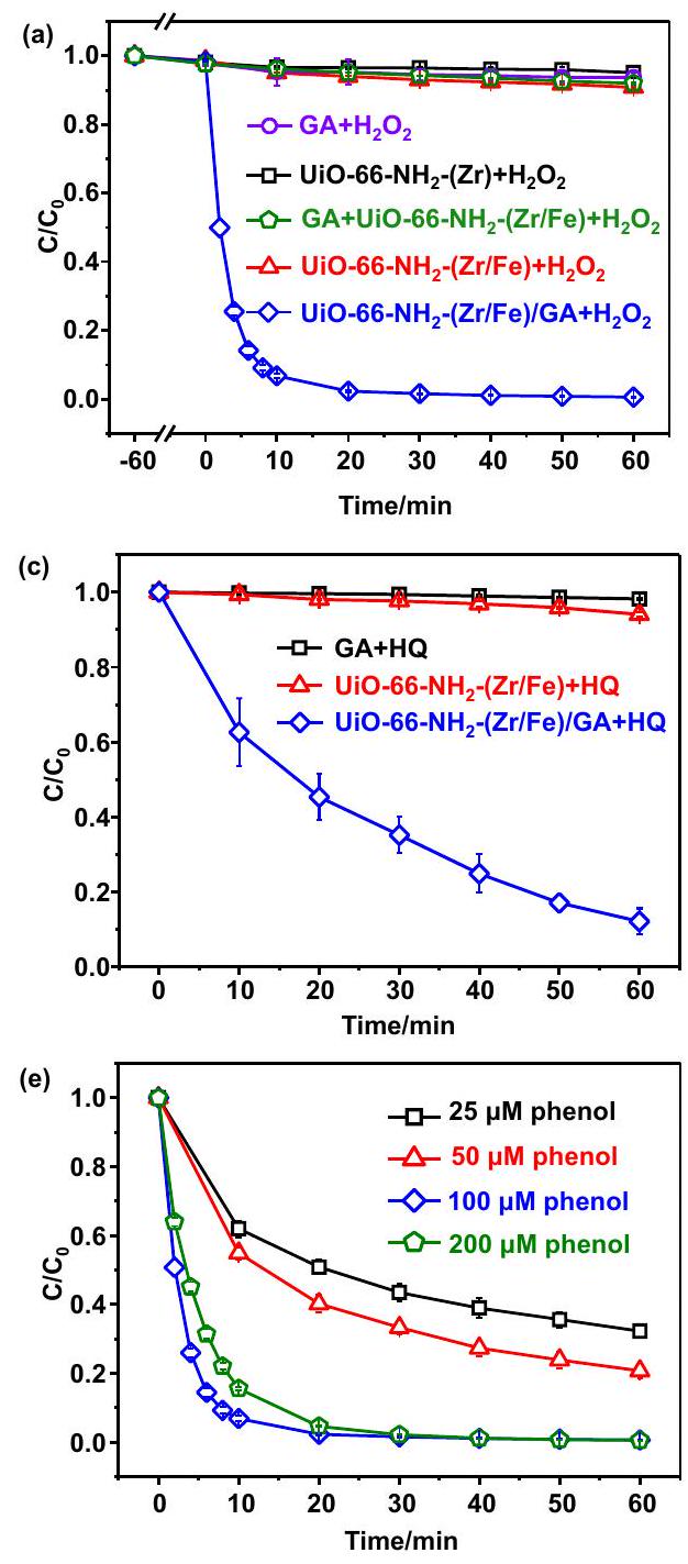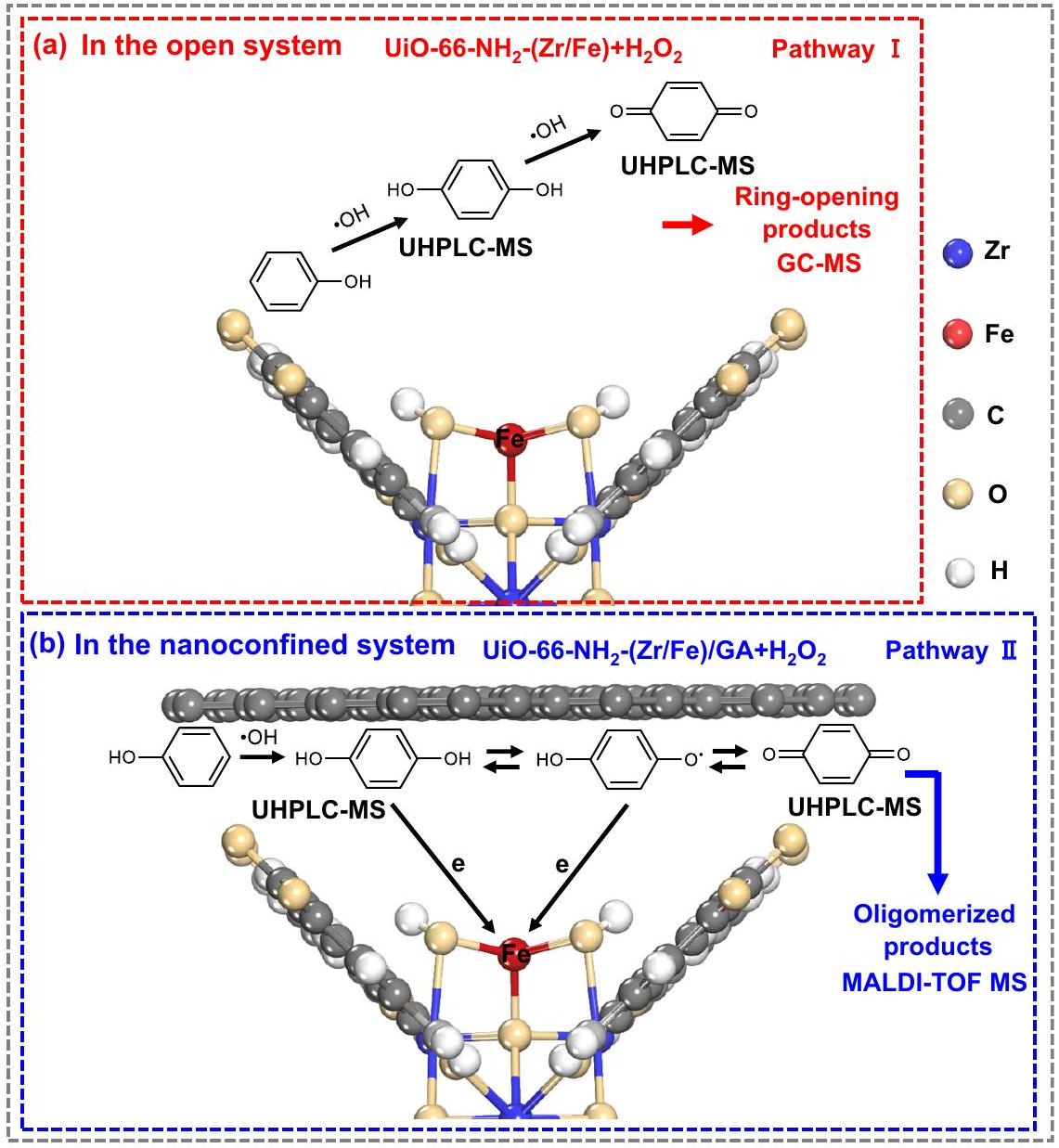 تمثل تفاعل فينتون غير المتجانس واحدة من أكثر التقنيات موثوقية لضمان سلامة المياه، ولكنها تواجه حالياً تحديات تتمثل في بطء اختزال Fe(III)، والإدخال المفرط للمواد الكيميائية لتعدين المواد العضوية، وانبعاث الكربون غير المرغوب فيه. تركز الجهود الحالية لتحسين الأداء التحفيزي لتفاعل فينتون في الغالب على كيفية تسريع اختزال Fe(III)، بينما يتم تجاهل خطوة تحلل الملوثات عادةً. هنا، نبلغ عن استراتيجية نانو احتجاز باستخدام هلام الجرافين (GA) لدعم UiO-66-