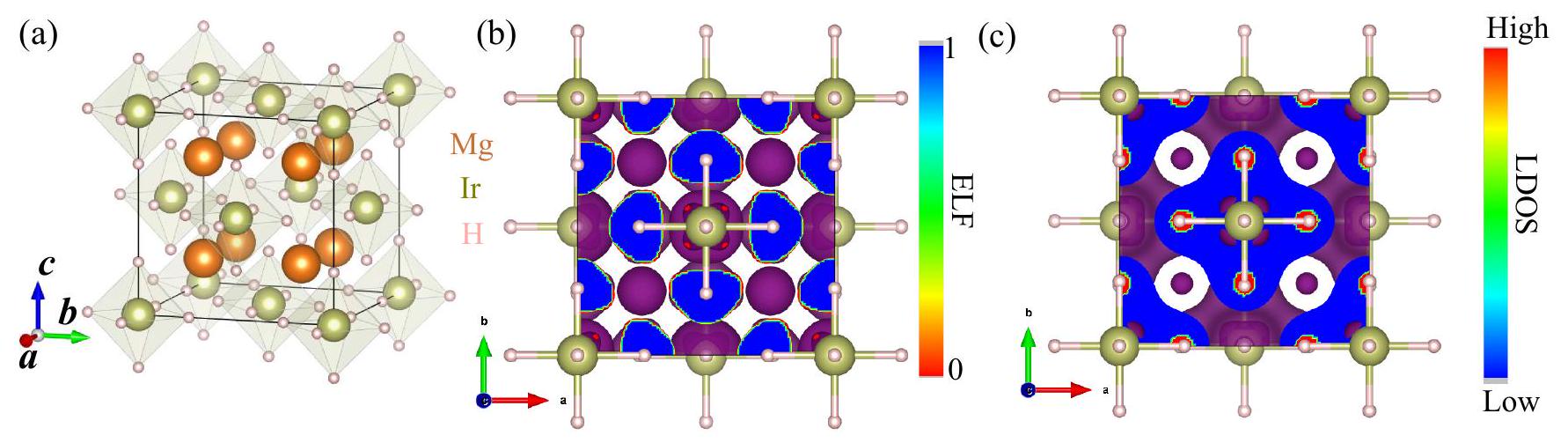 لفهم الروابط الكيميائية في الشكل المكعبقمنا بحساب وظيفة تحديد موضع الإلكترون (ELF) [56] والتي تم رسمها في الملحق (الشكل S5). تُظهر ELF أسطح عزل كروية محيطة بذرات الهيدروجين، مما يوضح الطابع الأيوني الجزئي لروابط Ir-H، الناتج عن الفرق الكبير في الكهربية السالبة بين Ir و H.