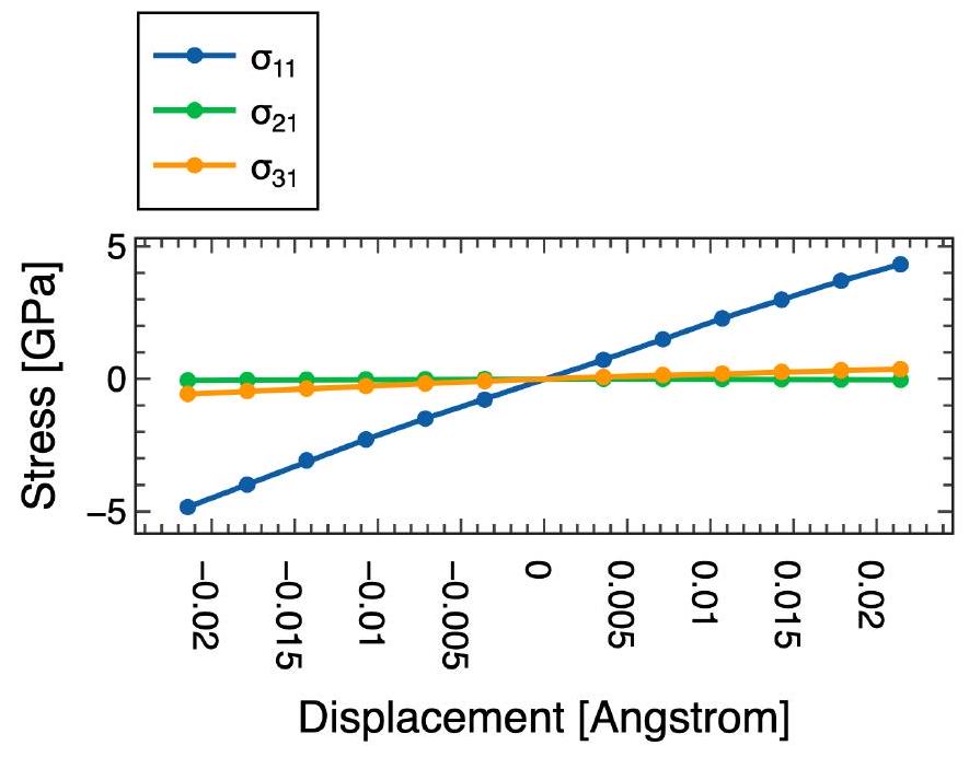 FIG. 19. Stress-unit-cell displacement for cubic at 0GPa, calculated using castep.