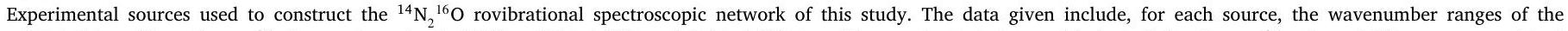تم إجراء مسح للعدد الهائل من الانتقالات الروبيترونية المقاسة لأكسيد النيتروز، والذي إما يؤكد المواقع، والتعيينات، وعدم اليقين في القياسات أو ينفي على الأقل واحدة منها. تم تحليل بيانات من 95 مصدر أدبي وتم تعديل تعييناتها إلى مجموعة موحدة من البوليدات وأرقام العد المرتبطة بها. هذه نتيجة مهمة للدراسة الحالية ويوصى بهذه المجموعة الكانونية من تعيينات الحالة الاهتزازية للدراسات المستقبلية. ثم خضعت القائمة المعدلة من 67930 انتقالًا (43246 فريدة) لتحليل شامل باستخدام مارفيل (مستويات الطاقة الروبيترونية النشطة المقاسة)، مما أسفر عن 17561 مستوى طاقة روبيترونية تجريبية. تم تحديد عدم اليقين لهذه المستويات باستخدام نهج البوتستراب الذي تم تنفيذه حديثًا. تشير عدم اليقين في البوتستراب إلى أن عدم اليقين لحوالي
