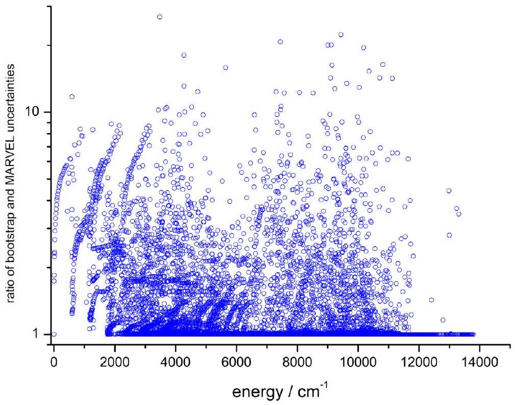 of which will be published elsewhere [201]. Uncertainties for the empirical rovibrational energy levels were determined using a newly implemented bootstrap approach. We believe this approach yields more realistic uncertainties and, at least in part, compensates for both underand overestimates of the published uncertainties of the transitions observed.