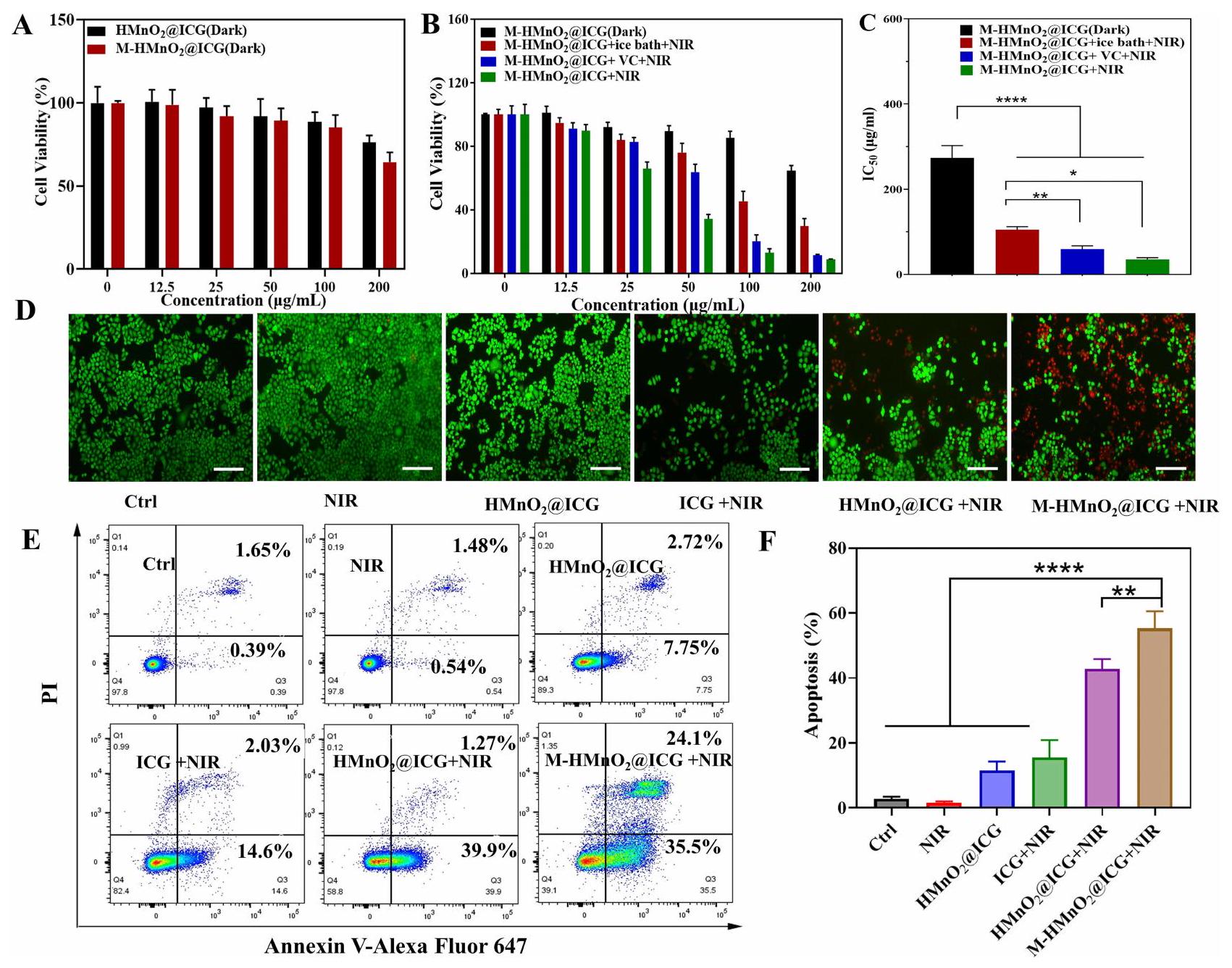 @ICG NPs homologously targeted tumor cells and immune escape due to their HeLa cell membrane surface coatings. We systematically validated the good antitumor effects of M-HMnO