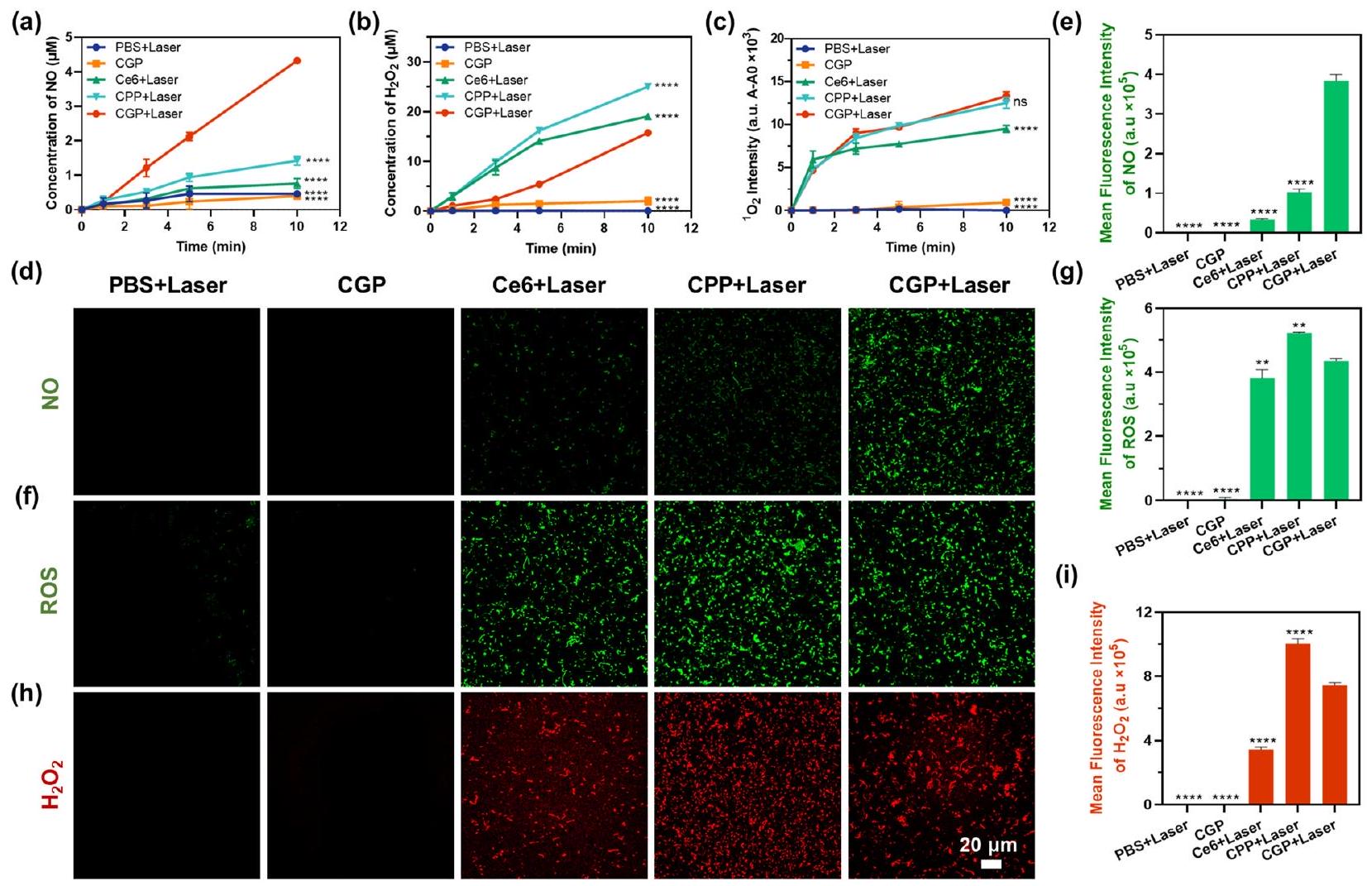 To corroborate the aforementioned results, we employed CLSM to observe the production of NO, ROS, and