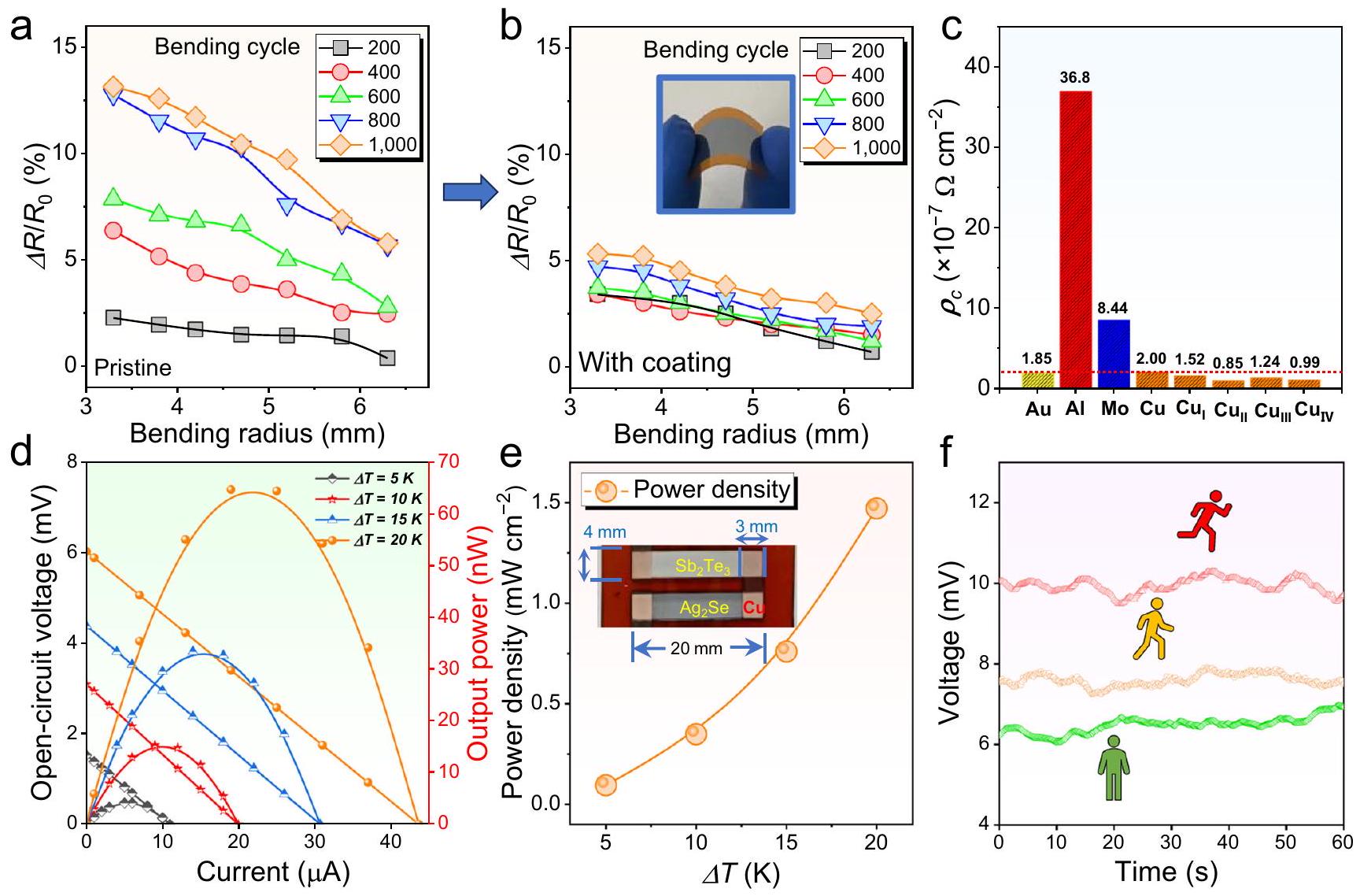 films with large carrier mobility. Nano Energy 87, 106223 (2021). - Hou, S. et al. High-performance, thin-film thermoelectric generator with self-healing ability for body-heat harvesting. Cell Rep. Phys. Sci. 3, 101146 (2022).
