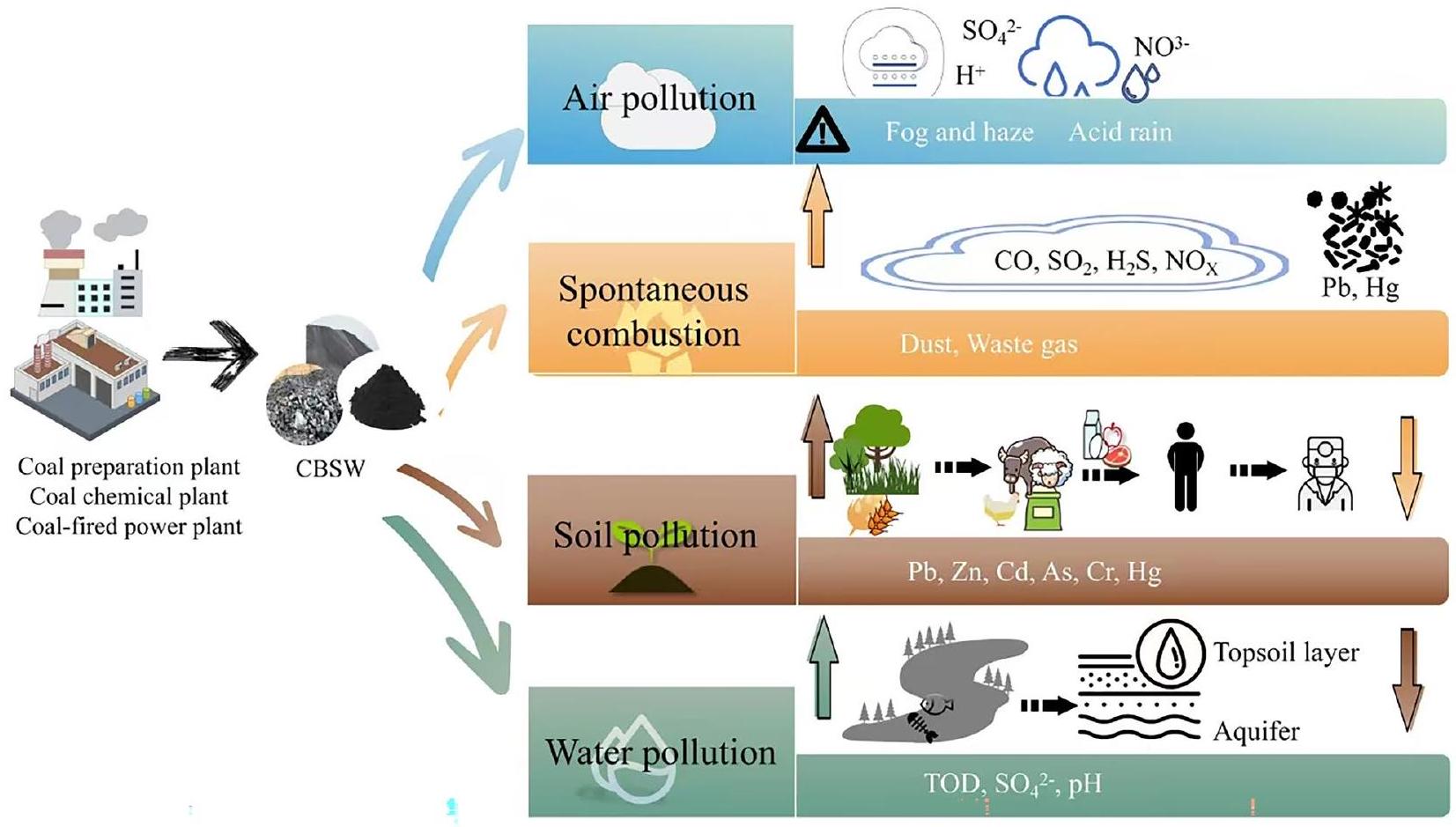 (1) CBSWs is widely used in the building materials industry, agricultural soil improvement and other areas. However, their utilization rate in other highvalue direction such as the extraction of minerals, new materials and catalysis is low. The utilisation process of coal solid waste involves high costs and demands more efficient technical support. Therefore, there is a pressing need to intensify research on the application of this technology. Efforts should be made to simplify the preparation of CBSWs functional materials. Relying solely on a single utilization method will not be sufficient to absorb the vast amounts of CBSWs across the region in a short period. Therefore, it is necessary to explore and establish a multi-industry linkage and collaborative utilization model for CBSWs tailored to local conditions. Elucidating synergistic mechanisms among multiple solid wastes and determining optimal proportions for various applications are essential for achieving high-volume utilization and complementary performance advantages.