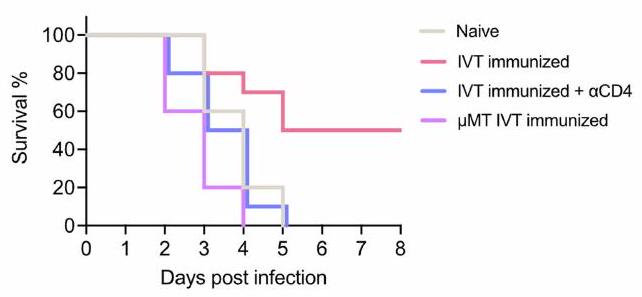تكاثر خلايا T في العقد اللمفاوية الدهنية المقارنة مع التحصين باللقاح AC (الشكل البياني الموسع) ). تشير هذه البيانات إلى أن إنتاج خلايا CD4 المحددة بمستضد محلي تستجيب خلايا T و B في العقد اللمفاوية الدرقية (dCLNs) من خلال التطعيم عن طريق الوريد (IVT) لحماية الجهاز العصبي المركزي المضاد للفيروسات في المضيف.