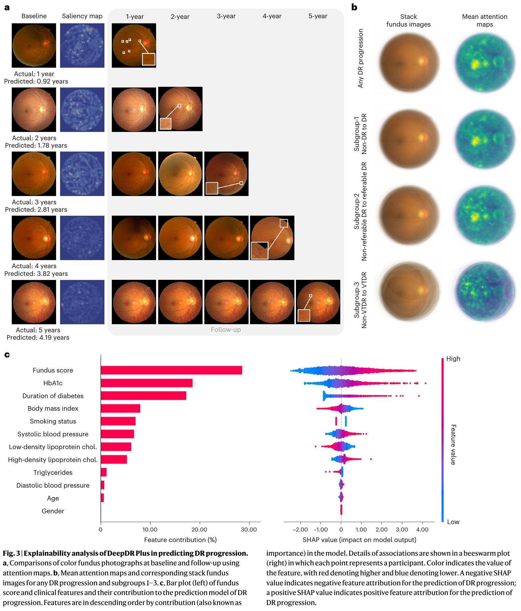 فقط 0.18%. أظهرت هذه النتائج أن نظام DeepDR Plus الخاص بنا يمكن أن يعزز تقييم المخاطر الخاص بالمريض ورعاية أكثر تخصيصًا لإدارة اعتلال الشبكية السكري، استنادًا إلى فحص شبكية العين لمرة واحدة فقط في المستقبل.