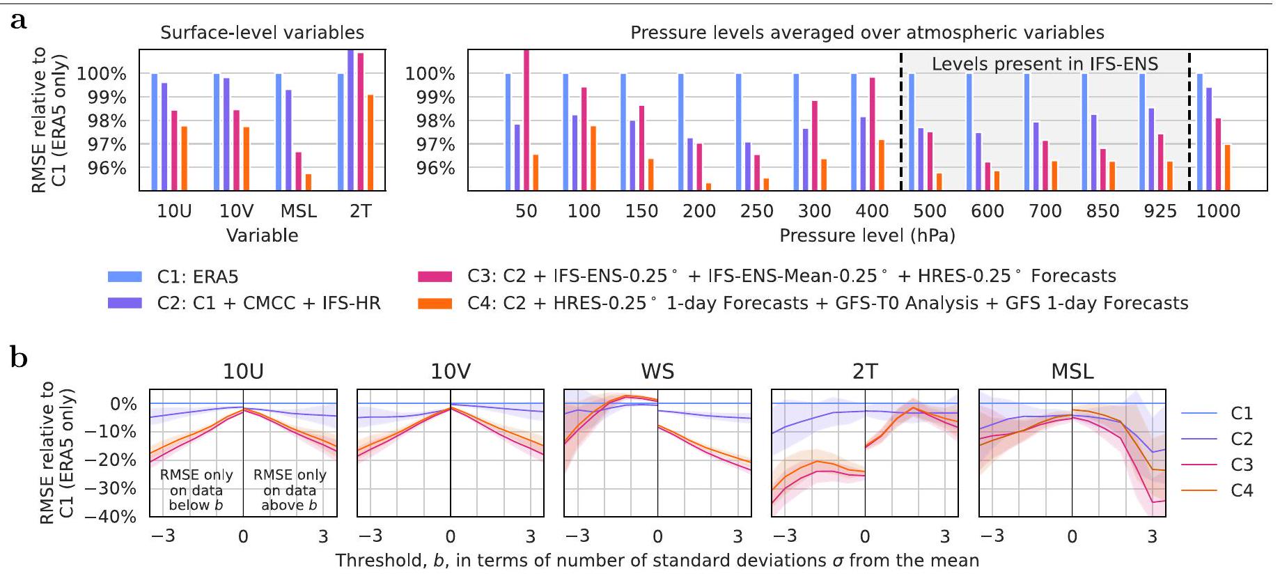 الدقة، متجاوزة النماذج العددية الحديثة على من الأهداف بينما تحسن أيضًا الأداء في الأحداث المتطرفة.