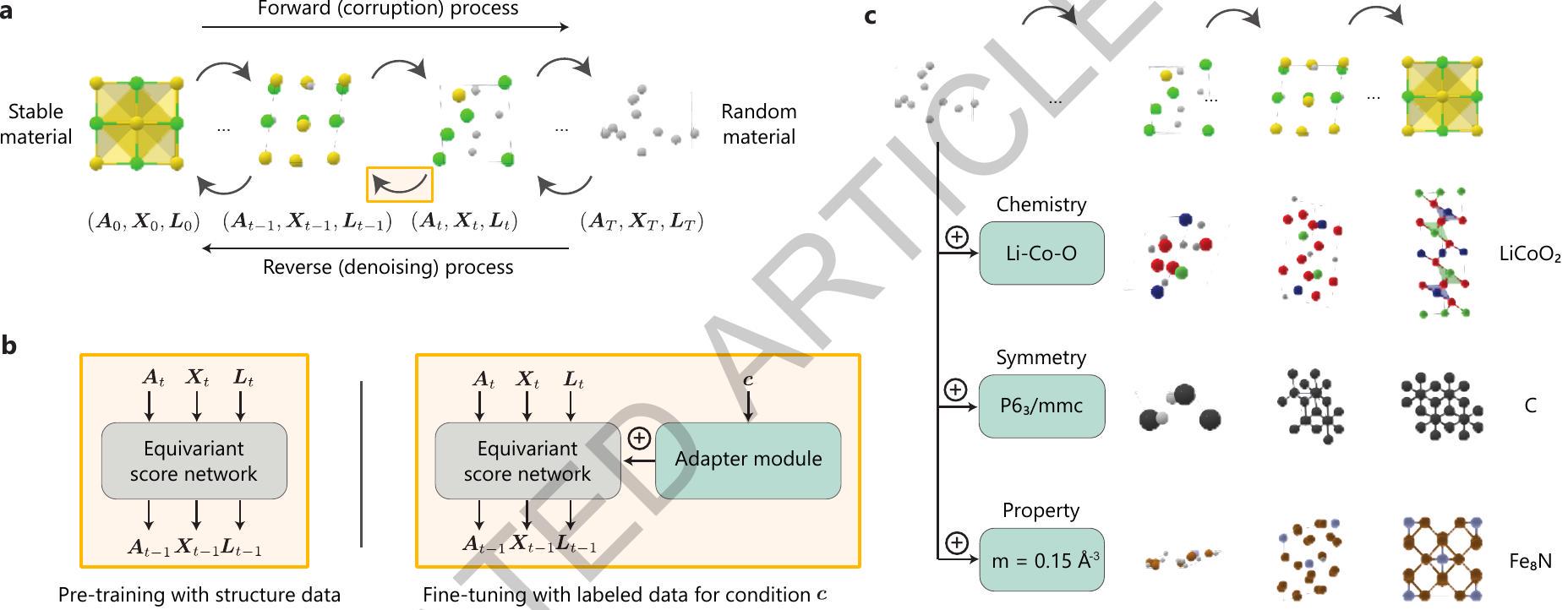 [32] Sultanov, A., Crivello, J.-C., Rebafka, T., Sokolovska, N.: Data-driven score-based models for generating stable structures with adaptive crystal cells. Journal of Chemical Information and Modeling 63(22), 6986-6997 (2023)