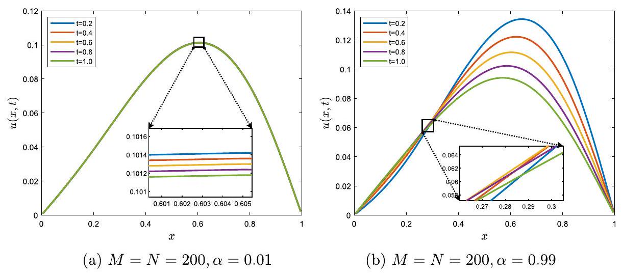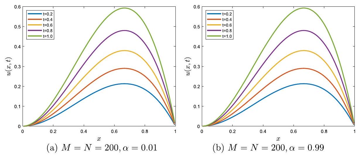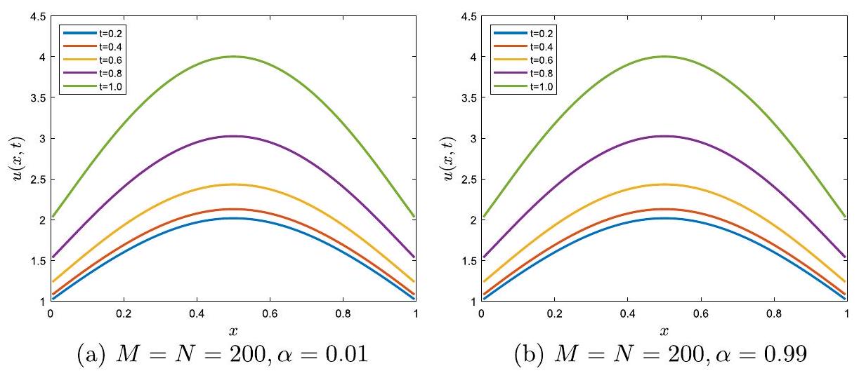 , and the source term is . The values of relevant parameters , and associated with the example are considered as and .