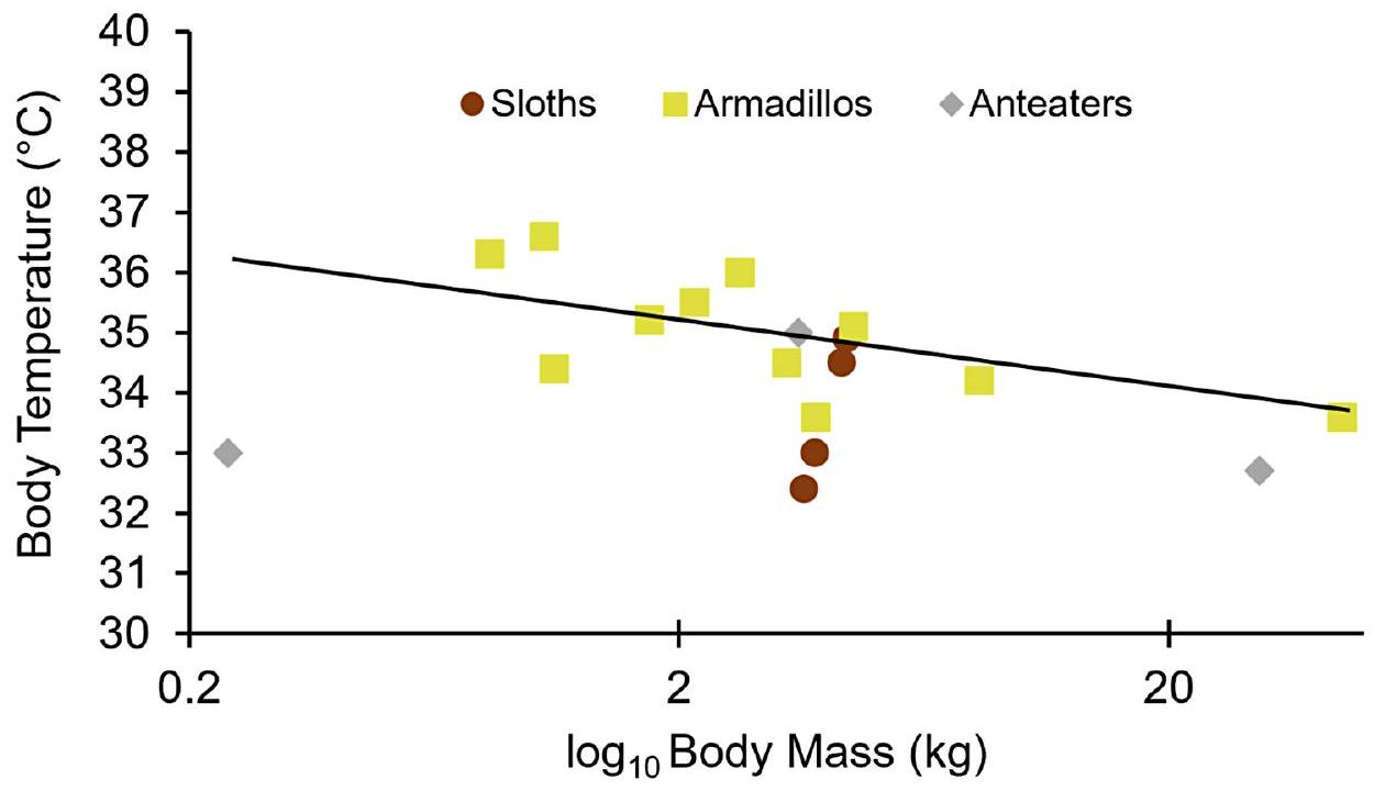 McNab, BK (1985) Energetics, population biology, and distribution of xenarthrans, living and extinct. In: Montgomery GG (ed) The Evolution and Ecology of Armadillos, Sloths, and Vermilinguas. Smithsonian Institution Press, Washington, D.C. pp 219-232.