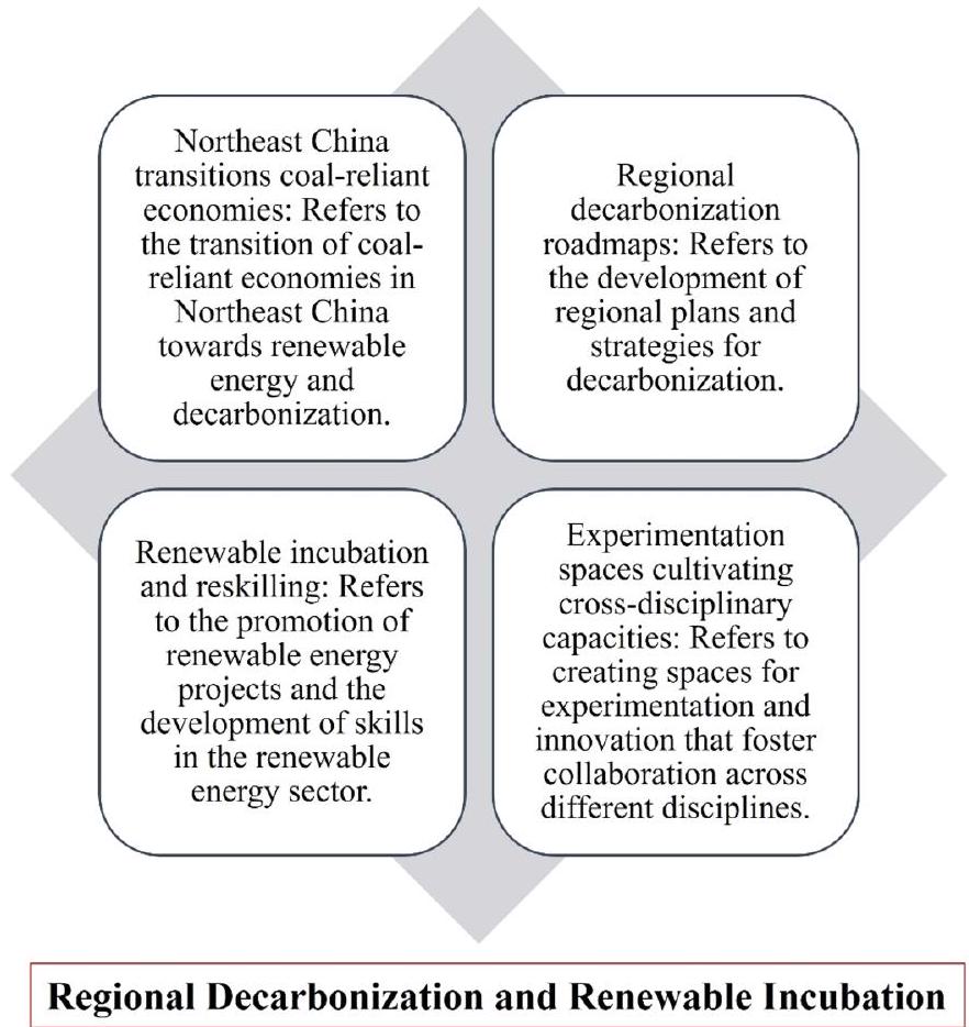 Figure 1. Interrelationships and strategies for regional decarbonization and renewable incubation.