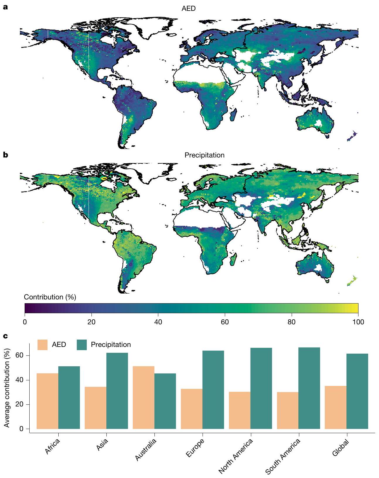 مساهمة AED في اتجاهات الجفاف في أمريكا الشمالية والجنوبية، وأوروبا، وآسيا حوالي