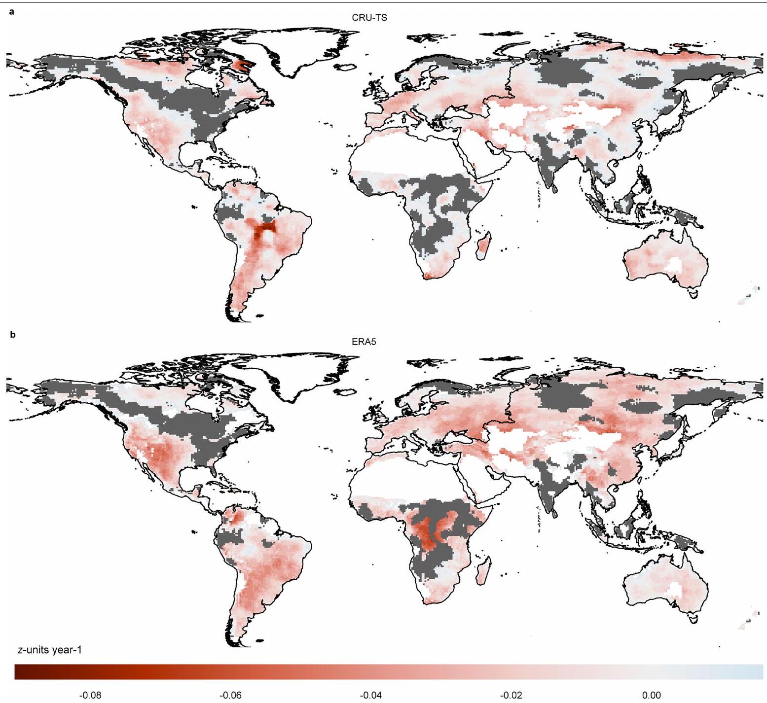 global land surface (Extended Data Fig. 9b), and the monthly average difference between them is up to