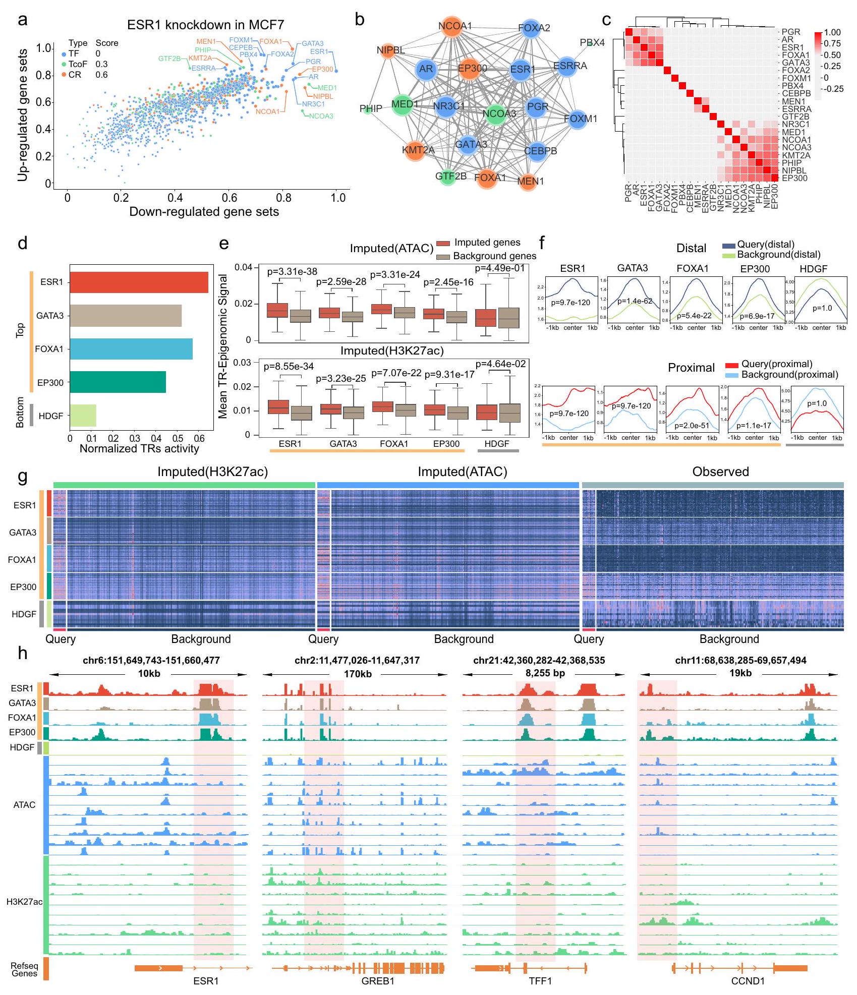 All datasets analyzed in this study are publicly available. The TR knockdown/knockout datasets were obtained from KnockTF and TF binding datasets from GTRD. The Lisa benchmark dataset can be accessed at http://lisa.cistrome.org/new_gallery/new_gallery.html. Moreover, the protein-protein interaction (PPI) networks were retrieved from the STRING database (https://string-db.org/). The breast cancer RNA-seq expression profiles are available from the TCGA (https://portal.gdc.cancer.gov/), while the breast RNA-seq expression profiles are available from the GTEx (https://www.gtexportal.org/home/ ). The ESR1 knockdown RNA-seq datasets are available at the Gene Expression Omnibus (GEO) repository under accession number GSE37820. The GWAS dataset was retrieved from causaldb (http://www. mulinlab.org/causaldb), and the Alzheimer’s disease-related H3K27ac data are accessible under GSE65159. The human hematopoietic stem cell dataset is available on GitHub (https://gitlab.com/cvejic-group/ integrative-scrna-scatac-human-fetal#data), the human embryonic stem cells dataset is accessible under GSE75748, and the normal human tissue expression profiles were obtained from GTEx (https://www. gtexportal.org/home/). Source data are provided with this paper.